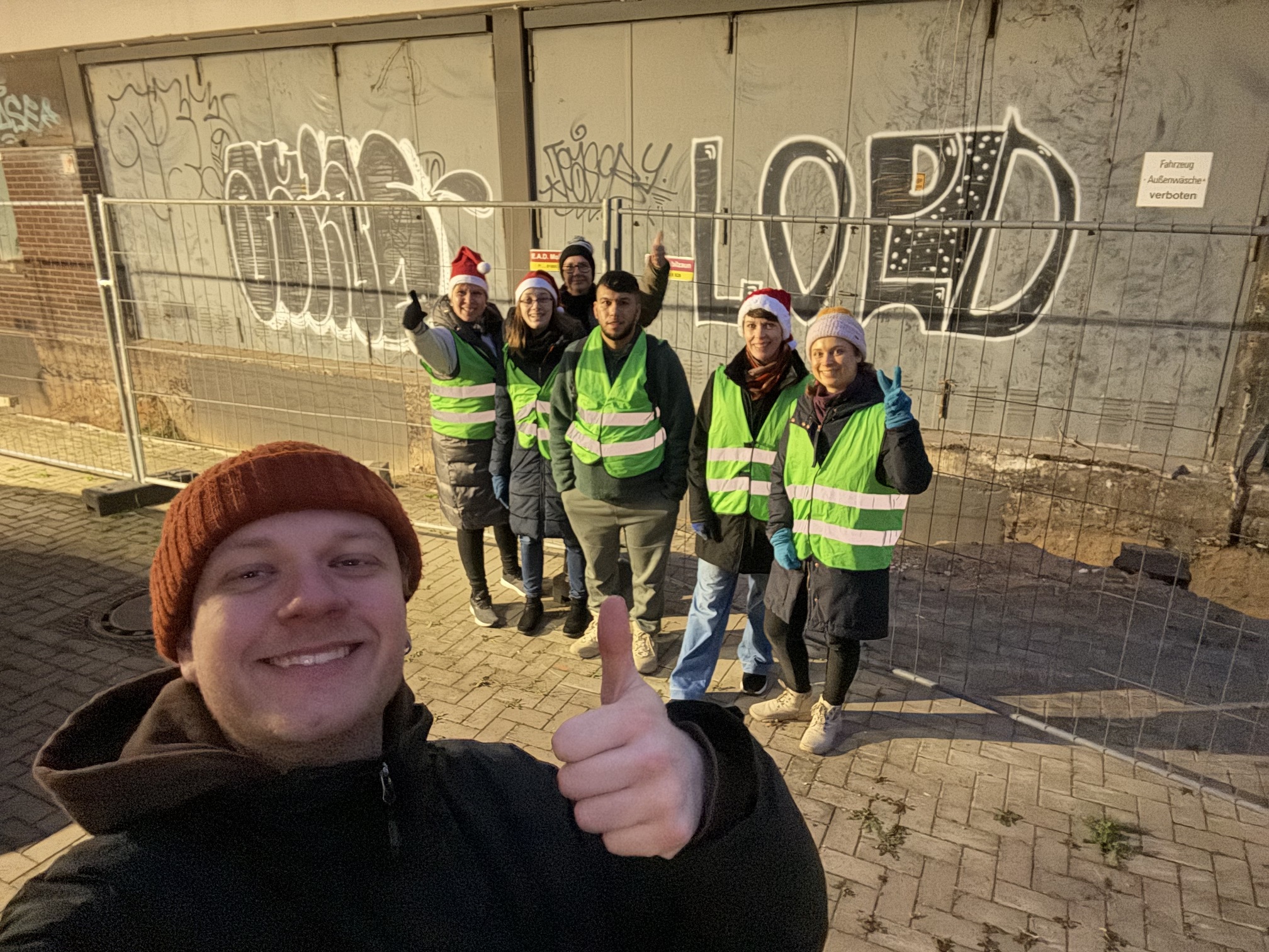 Dann sind wir im Szeneviertel am Bahnhof losgezogen und haben die Gaben an Obdachlose und Drogenkranke verteilt.