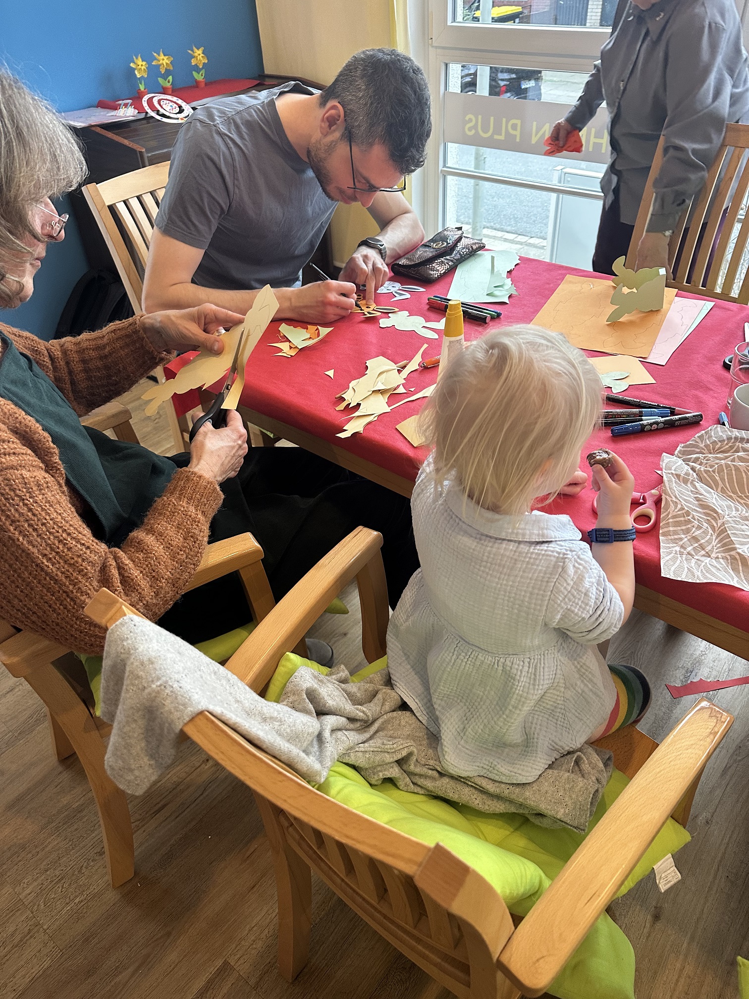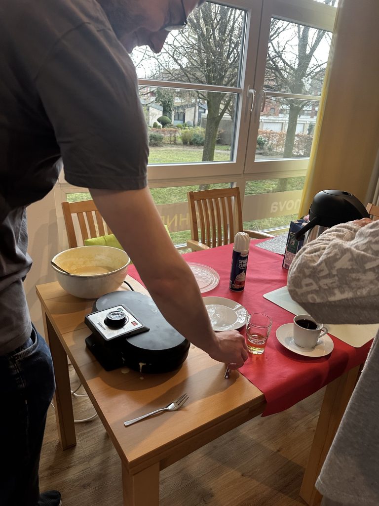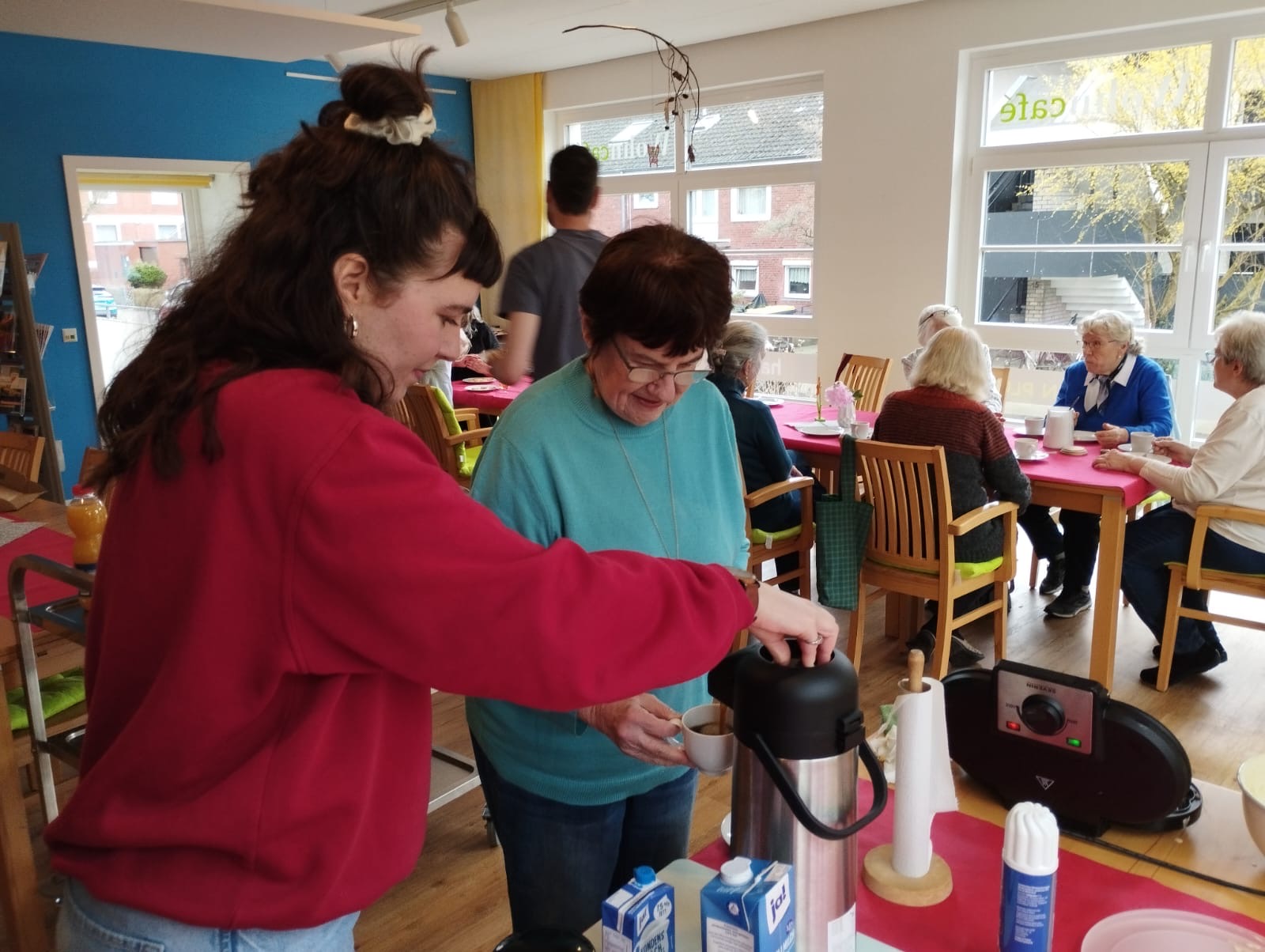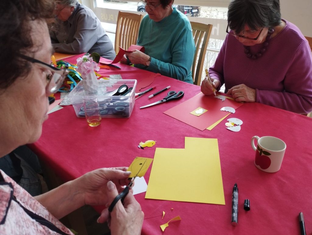 Freiwillige, die Lust haben in Gemeinschaft mit SeniorInnen etwas österliches zu basteln und dazu eine Waffel zu backen/zu essen.